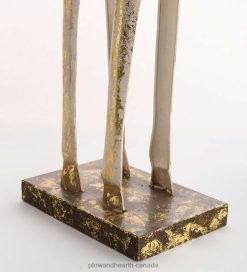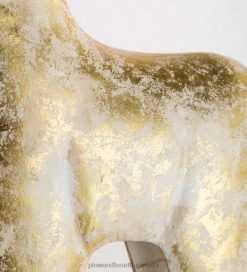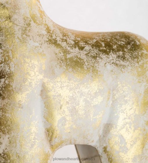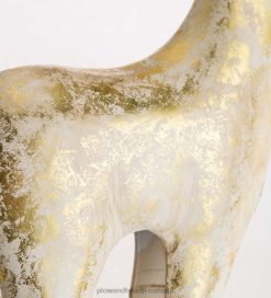 Cast in iron from original sculptures that feature graceful flowing lines and a modern design aesthetic, each deer is painted in mix of metallic gold and white. For indoor display only. Set includes one of each style.