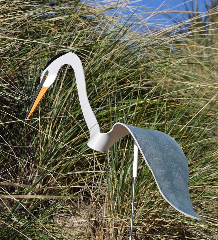 Dancing in the wind, this Great Blue Heron moves and sways with the slightest breeze due to a special hinge that allows it to swivel and dip just like the real thing! Made from UV-resistant PVC, it’s fade-resistant and entirely hand painted and hand formed.