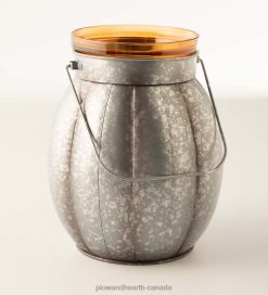 Handmade of galvanized metal with hammered detailing and carrying handle, our charming pumpkin lantern has a versatile design that enables you to hang it, display it tabletop or place it on the porch steps. Use anywhere indoors or in a protected outdoor location.