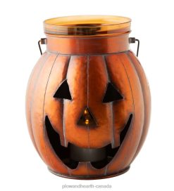 - Halloween Pumpkin Metal Lantern with LED Candle adds a spirted presence to any spot