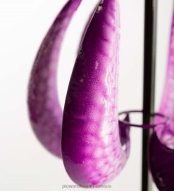 Metal spinner body is painted and hammered for extra texture and interest. Brilliant purple color looks great in any outdoor space.