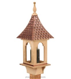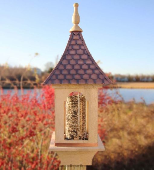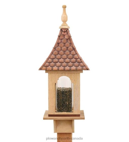 Plow & Hearth Hand-Hammered Copper and Unstained Hardwood Villa-Style Bird Feeder Yard & Garden 680X0766
