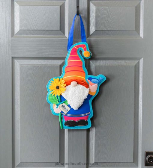 Crafted of medium-weight, soft polyester burlap fabric, this door decor is durable and weatherproof, ensuring that it will not fade or fray after continued use. The gnome is dressed up in a colorful outfit, and his door hanger is dressed up with dimensional accents, like a round nose, fluffy beard, and a sunflower with fabric petals.