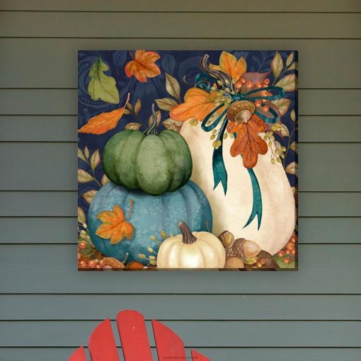 This Harvest Pumpkins Indoor/Outdoor Canvas Wall Art incorporates soothing blues and autumn charm for the perfect look.