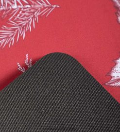 - Comfort mat with winter-themed design in shades of holiday red and snowy white