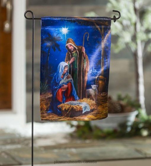 - Spectacular detail, and vivid color bring the classic Nativity scene to life in this beautiful garden flag