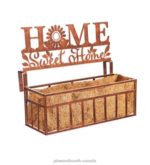 - Rustic railing planter featuring a Home Sweet Home topper and copper finish