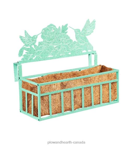 - Rustic railing planter featuring a hummingbirds and floral topper in a verdigris finish