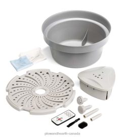 Six-piece kit includes: water pool basin, display plate, smart fountain pump, cascade fountain head, sprinkler fountain head and remote control. No cords; use indoors or out with remote feature. Easy to clean; cleaning kit included.