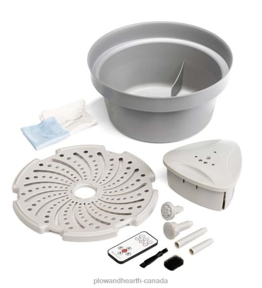 - Kit includes water basin, display plate, pump, cascade fountain head, sprinkler fountain head and remote