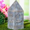 - Constructed from weather-safe resin, painted to look like an antique fountain