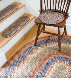 Crafted in New England in true colonial style, our Roanoke Braided Stair Treads are flat braided using texturized polypropylene yarns, which create a wool-like finish and make the rug stronger and more flexible.With a woven polypro core, these heavy-weight braids will always retain their shape and strength. They’re so comfortable, colorful and durable, you’ll want them in all the busiest areas of your home. Use indoors or out – the colors will always remain bright and true. Plus, they reverse for twice the wear! Use of a rug liner/pad is recommended.See the coordinating Rugs and Chair Pads for a great look in dining room, kitchen, hallway and more. Made with pride in the USA by Rhody Rugs, a family run company.