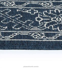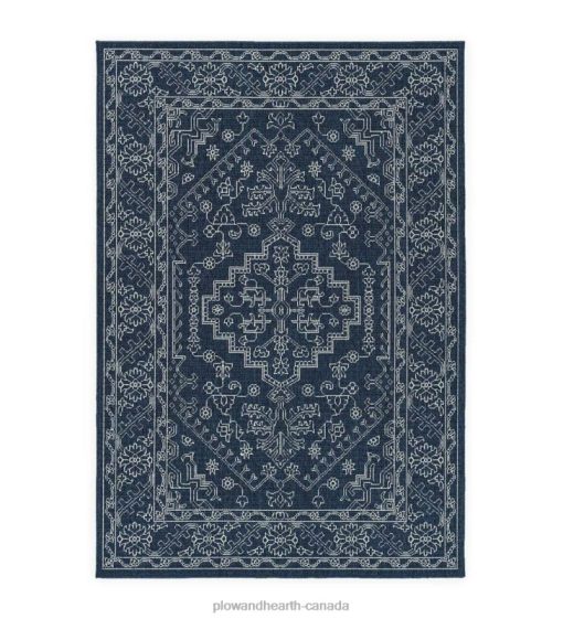 Our Indoor/OutdoorBrunswick Damask Polypropylene Rug brings the color and detail traditionally only available indoors to a durable rug that’s right at home outdoors as well. This stunning rug is machinemade in Egypt in bold Navy blue with an intricate ivory pattern of floral and geometric shapes.