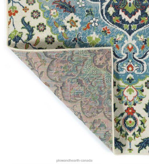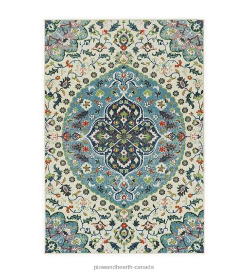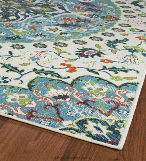 Our Indoor/OutdoorBrunswick Medallion Polypropylene Rug livens up your indoor or outdoor spaces with color and detail rarely seen in an outdoor-friendly rug. Machinemade in Egypt, this delightful rug displays vibrant shades of ivory, lime green, navy, tangerine and light blue in a floral motif with traditional medallion design.