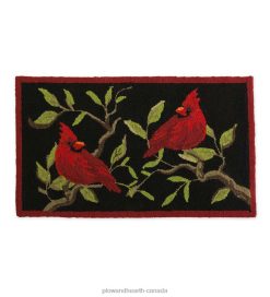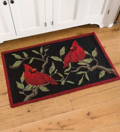 Regal redbirds add eye-catching color to any space from family room to front porch. Made of all-weather, hand-hooked 100% polypropylene, this colorful rug is durable enough to use indoors and out. Tonal variations in the yarn lend depth and character to the design.