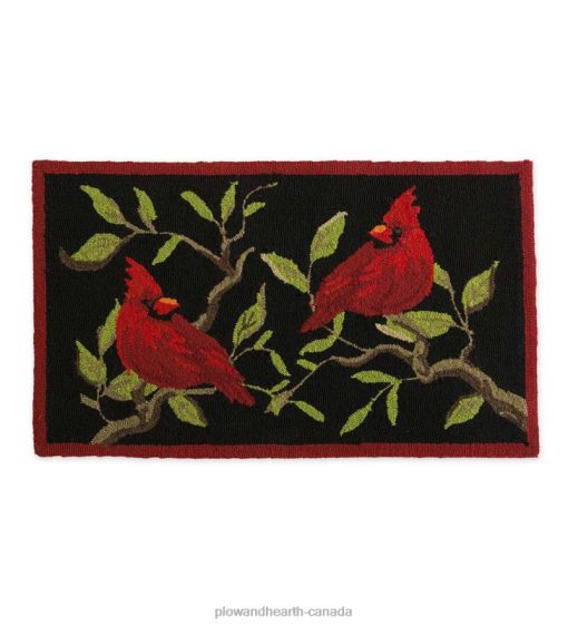 Add a splash of color any time of year with our bright and durable Cardinal Accent Rug. Two cardinals perching on a leafy branch pop against the black ground with red border.