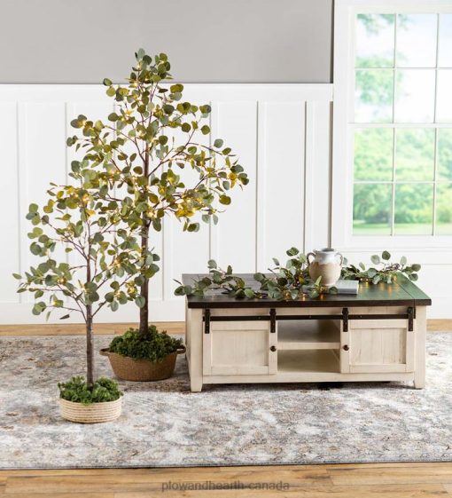 - Electric lighted faux eucalyptus tree with LEDs