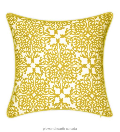 Plow & Hearth Indoor/Outdoor Embroidered Lacework Throw Pillow – Yellow Houseware 680X03186