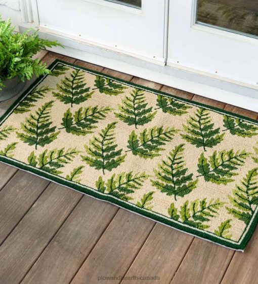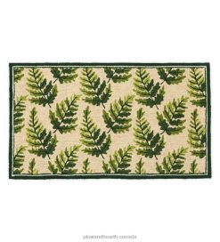 Pretty as a walk through the forest, our Fern Indoor/Outdoor Accent Rug features rich green fern fronds on a neutral background. Hand-hooked rug offers great texture, design and durability.