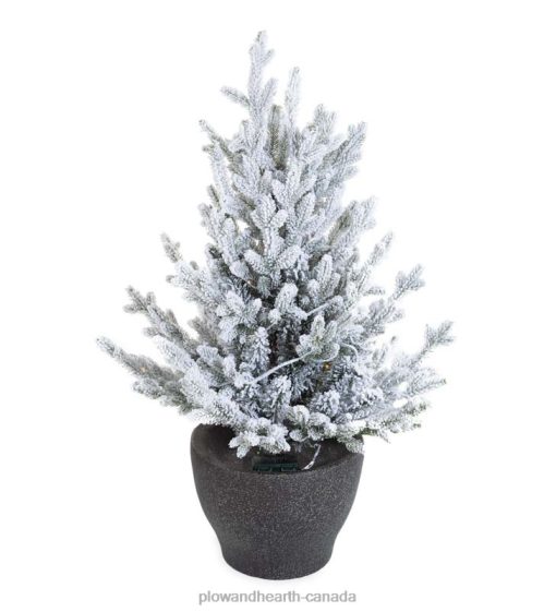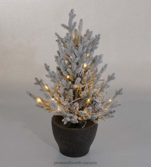 Our amazing Flocked Roanoke Spruce Potted Tree features all the best qualities of a snowy fresh-cut tree without the mess, shedding or care and comes pre-lit with warm white LED lights for a stunning and elegant accent.