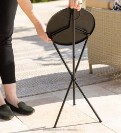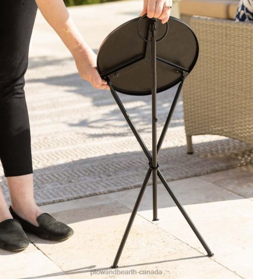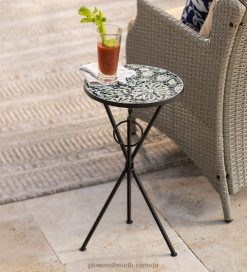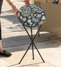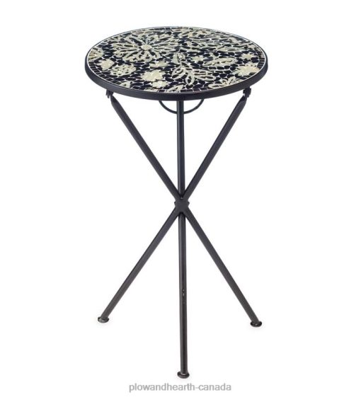 Side table also folds, and the ring makes for easy hanging in a closet or shed when not in use. Made of durable iron and mosaic glass.