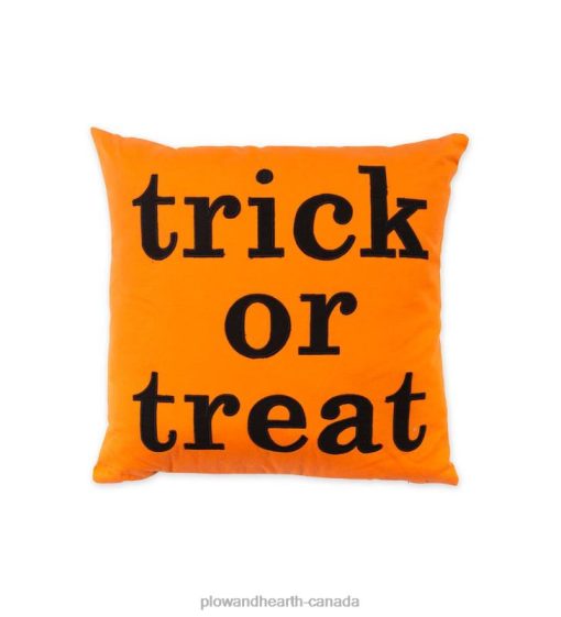 The Trick Or Treat Throw Pillow features black letters embroidered against a bright orange background.Each pillow has a removable, washable cotton cover; polyfill. Imported.