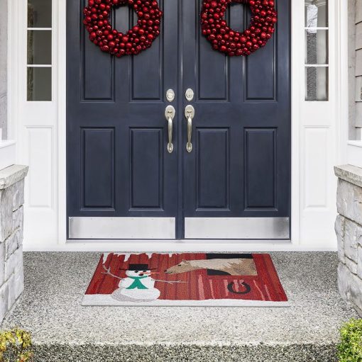 Complete your holiday decorating with this Hand-Hooked Horsing Around Rug. This humorous scene features charming details and is perfect for welcoming the winter season.