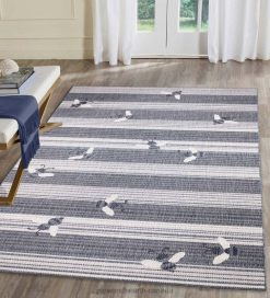 - Rug with striped background and honey bees adds a whimsical touch to your home