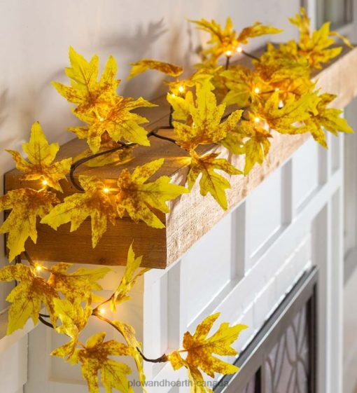 Plow & Hearth Indoor/Outdoor Lighted Golden Sugar Maple Leaf Garland with 24 Lights Houseware 680X01562