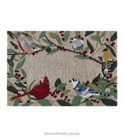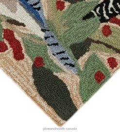 This Indoor/Outdoor Synthetic Blend Birds Border Rug has the beauty and softness of a traditional pile rug, but it’s made of 80% polyester and 20% acrylic to stand up to high traffic indoors and out. The whimsical design of familiar backyard birds amid branches laden with leaves and berries adds a delightful touch of outdoor style at any time of year.