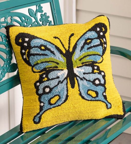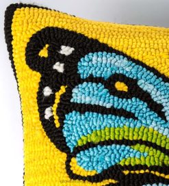 - Pillow has a stunning butterfly on a bright yellow background