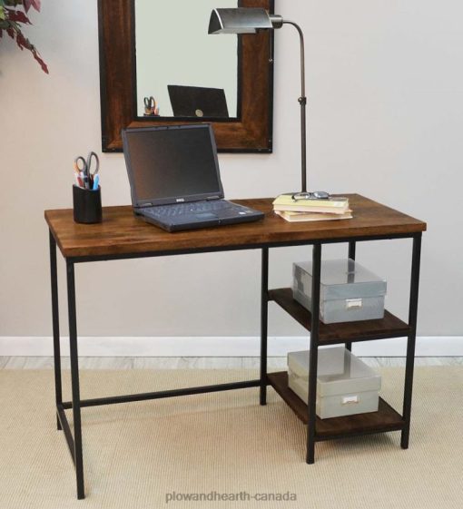 Ideal for the home office, this handsome desk features a textured black powder-coated metal frame with desktop and shelves crafted from sustainable mango wood. The desktop is a generous 42 long by 20 wide and sits at 30 high for comfortable typing or writing.