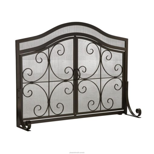 Ornamental scrollwork in solid wrought iron sets our exclusive Crest Fireplace Screen With Doors apart.