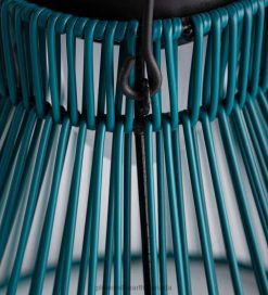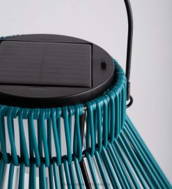 - Solar pendant light with a wicker shade adds ambiance to the outdoors