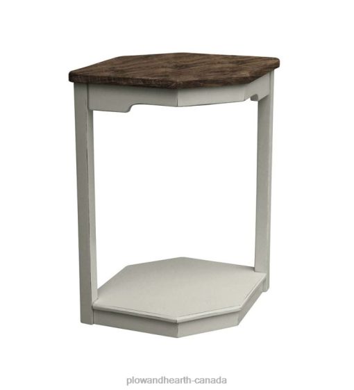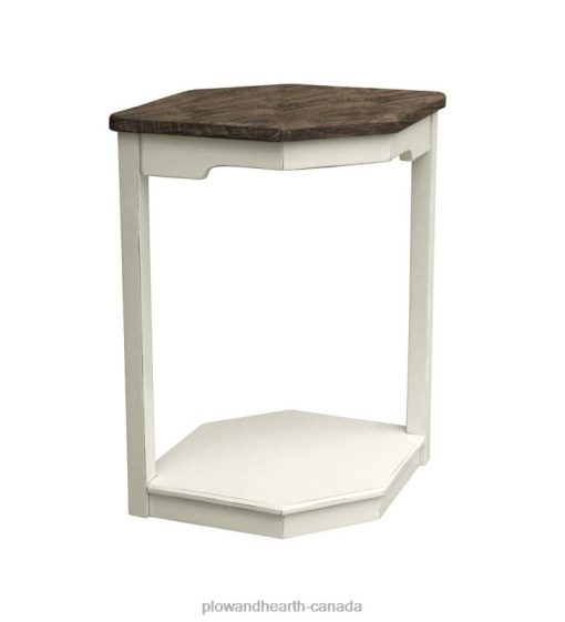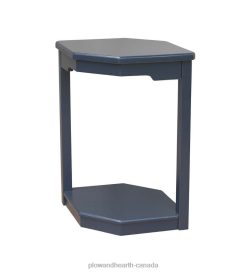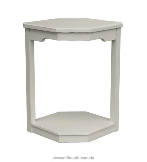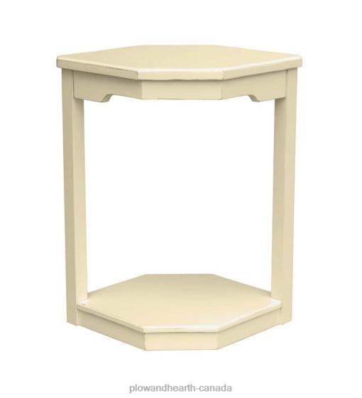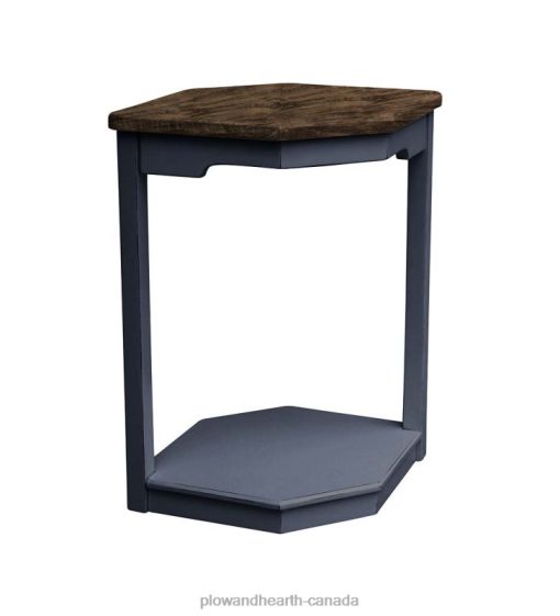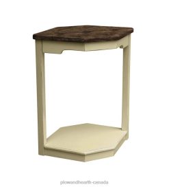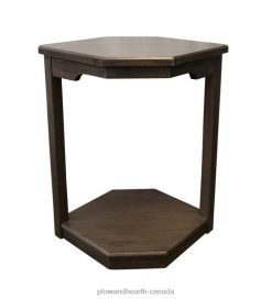 Hexagonal side table is handmade with superior craftsmanship and attention to detail. All framing and structural components are solid hardwood. Pretty enough to display photos or keepsakes and sturdy enough to hold books and plants. It has a unique shape and bottom storage shelf making it ideal for smaller spaces.