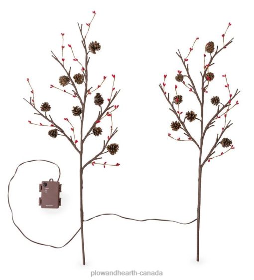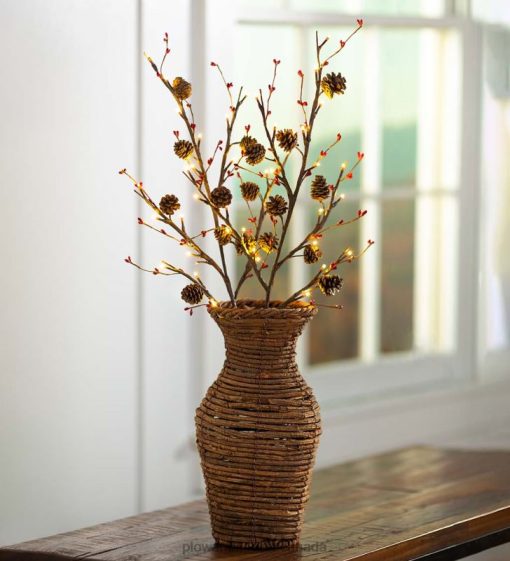 Natural pine cones and faux red berries accent these gorgeous Lighted Branches, giving you innovative ways to decorate your home indoors or outdoors. Arrange the branches in a vase for a table centerpiece, set them on a bookcase or mantel, or on a porch.