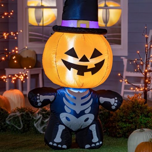 - This Lighted Jack-O-Lantern Skeleton Halloween Inflatable will add glow and magic to your yard