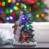 The traditional lantern design houses a quaint Christmas scene with Santa and friends. Flip the switch located on the bottom for the lantern to play Jingle Bells as the tree lights up with multicolor lights and snow starts to swirl.