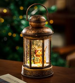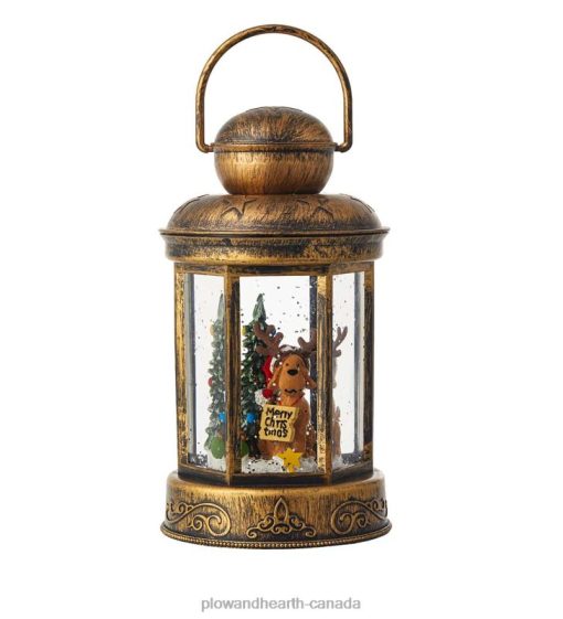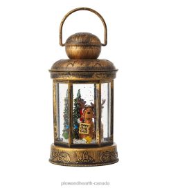 With a flip of a switch, the scene comes to life as it’s illuminated and the reindeer starts turning while snow swishes around. Crafted of durable polyresin and plastic, the brushed bronze finish of the lantern adds to its antique feel. A mesmerizing accent for your tabletop, mantel, bookshelf and more, this piece will add Christmas magic to any space you choose.
