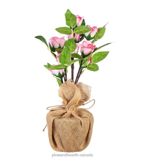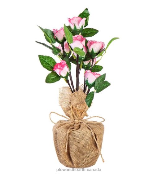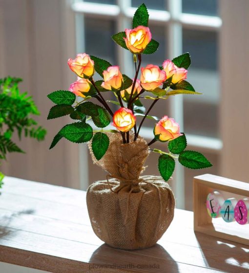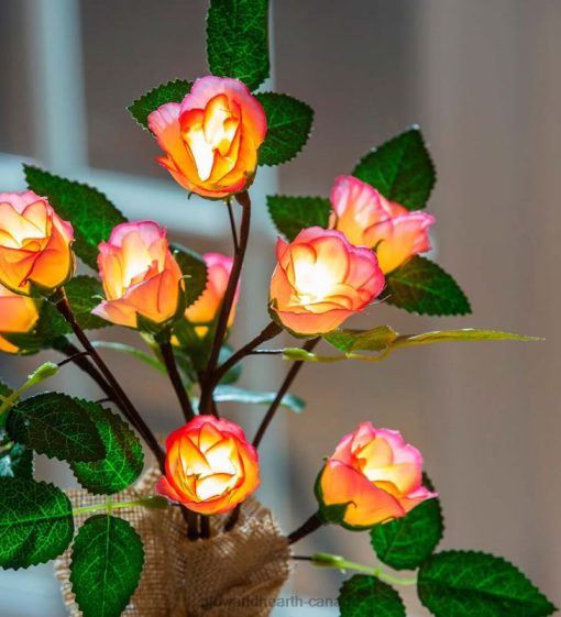 The roses sit in their burlap pot, adding a rustic appeal to the design. Bring the design to life at the flip of a switch and watch as these delicate roses offer a warm glow to set the mood. It can also be showcased on a mantel or end table to brighten up a room.
