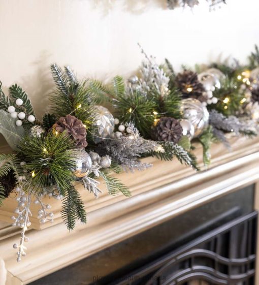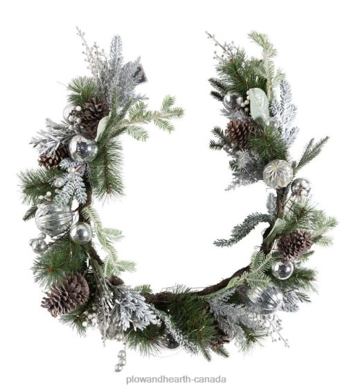 Plow & Hearth Lighted Silver Evergreen Holiday Garland Houseware 680X01707
