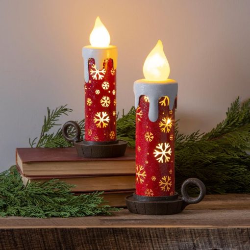 Plow & Hearth Lighted Snowflake Candlestick Table Decor, Set of 2 Seasonal & Gifts 680X02176