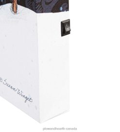 The winter scene depicts a joyful snowman with two reindeer friends in winter attire underneath a string of Christmas lights that actually light up! Holiday details and a damask-patterned background brings an extra touch to this snowy design.