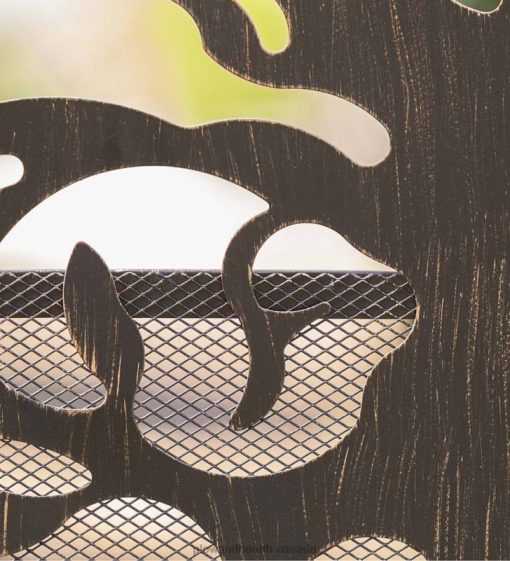 - The laser-cut tree design is supported by mesh panel