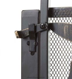 Laser-cute Tree of Life design is supported by mesh panel. Ground-mount the gate for stability. Working gate has latch closure. Metal gate; frame is finished in black, tree design is burnished bronze.
