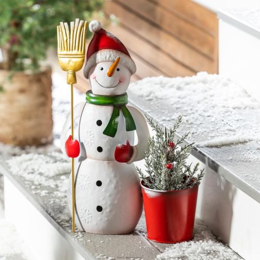 Add some festive color to your home this season with this Metal Bobble Snowman with Planter.