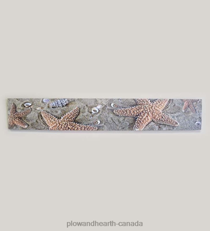 Feel the sun on your face and the sand between your toes with the Mill Wood Starfish Wall Art. Realistic starfish, empty shells, sand and the beauty of the beach come to life in this spirited work of art. Looks lovely hung at the lake or beach house, by the dock, over a doorway or entrance, standing upright in a corner, over the fireplace and more!Designed and manufactured in the United States, each Mill Wood Art piece begins as a rough milled log and is transformed into an original artwork by skilled artisans. The natural beauty and warmth of the wood creates a striking focal point that promises to enhance any of your rooms. Safe for indoor or outdoor use under a covered area, Mill Wood Art’s solid pine art piece will change slightly with humidity levels and arrives ready to hang with included sawtooth hardware.