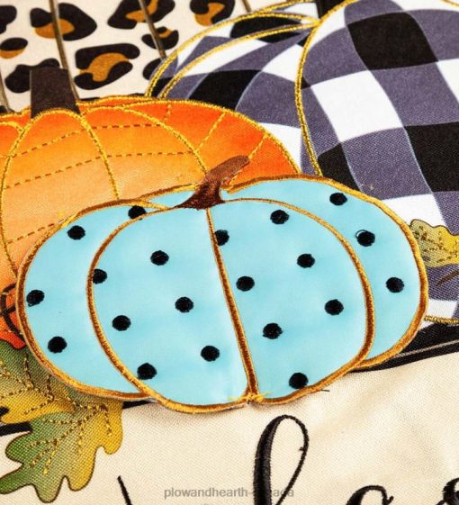 - Fall garden flag welcomes guests with a variety pumpkins featuring fun, whimsical patterns