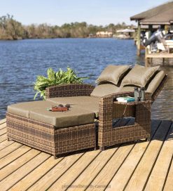 Plow & Hearth Multi-Functional Outdoor Wicker Love Seat Chaise Lounger with Taupe Cushions Houseware 680X01083