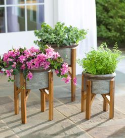 Plow & Hearth Olivia Fabric Planter with Macrame Holder – Blue Yard & Garden 680X0930